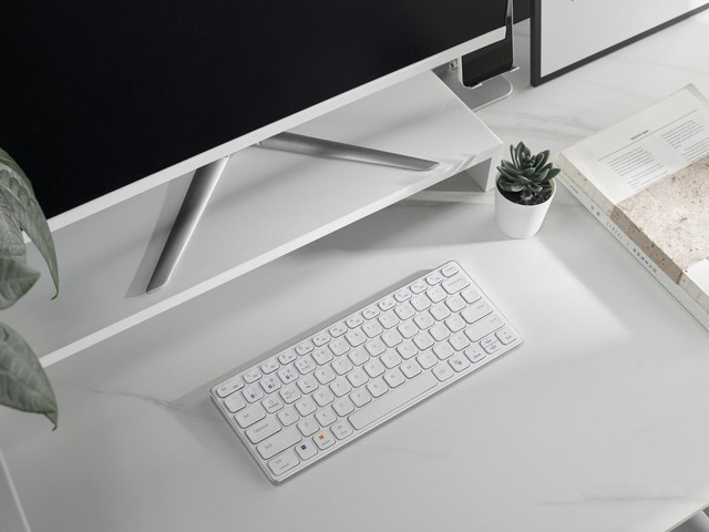从触摸到感知,深入移动办公场景,9080G集各种功能于一体,打开便携式模式。键盘采用78键紧凑型键位布局,选用铝合金边框,巧克力独立键帽采用剪刀脚结构搭配硅胶颗粒质感,触感细腻,按键受力均匀,轻如水。