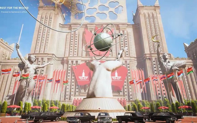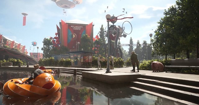 在赛博朋克科幻蓬勃发展的这些年里,人们心中的科幻似乎默认了红、绿、蓝数据线交织下的信息爆炸。《原子之心》就像西伯利亚雪原上的一枪,打开了一个新的页面,或者说是被遗忘的页面。庄严与烈酒,庞大的科技工厂,宏伟的艺术宫殿,钢筋骨架机械巨像,阳光下的红旗,苏联科幻的梦想红星此刻闪耀。