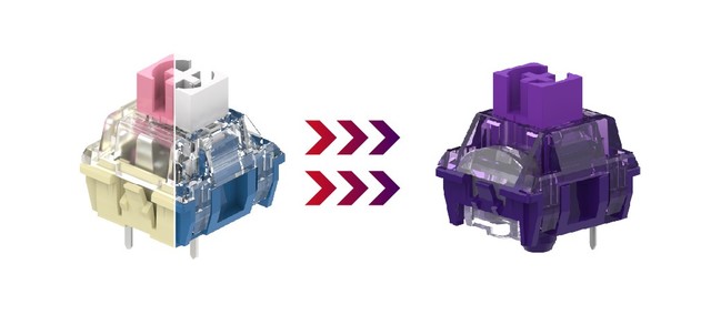 TTC火焰紫轴是一种超级轴体,兼顾金粉轴和快银轴的特点,适合办公和游戏。经过一年的材料分析和应用,率先采用高耐磨、低噪音的POK材料,加长轴芯触底,手感和HIFI打字音都很好。