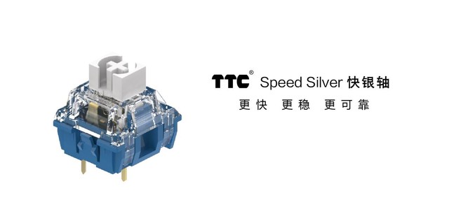 针对现有快轴(银轴)容易误触的痛点,TTC设计提高了初始压力,防止手轻轻放在键帽上时出现误触的风险,同时降低了公差,提高了触发的准确性,实现了更快、更稳定、防止误触的特点,深受游戏玩家的青睐。