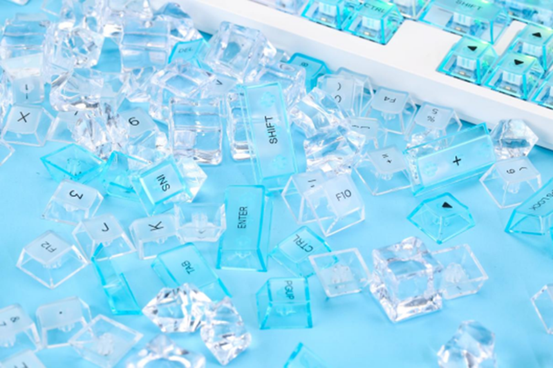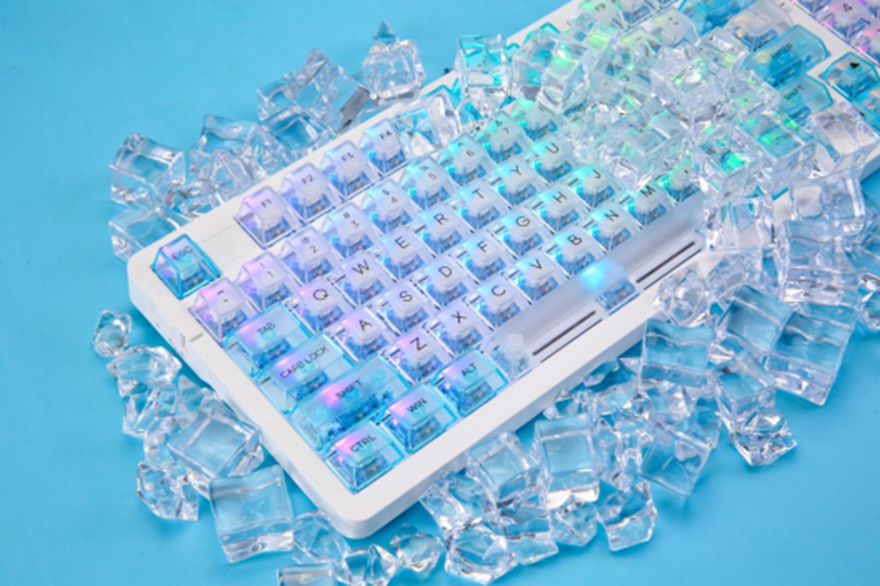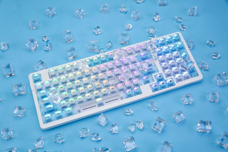 达尔优A98“水透版”采用全新优化的透明键帽——键帽侧面的抛光高透明度与前磨砂雾透明度相匹配,没有加强筋设计,在拒绝指纹残留的同时保证了全彩RGB的完美灯光效果,展现出水透无相的美感。