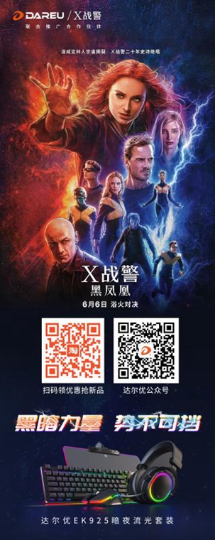 《X战警黑凤凰》已经于6月6日开启对决,电竞外设领军品牌达尔优作为影片的合作方,为了全力支持影片发行,现开始粉丝回馈活动,即日起下单的用户即可参与抽奖活动,奖品除了电影票以外还有多种惊喜好礼,下单就有惊喜,小伙伴们抓紧时间行动起来吧,与达尔优一起见经历青春,见证绝唱。
