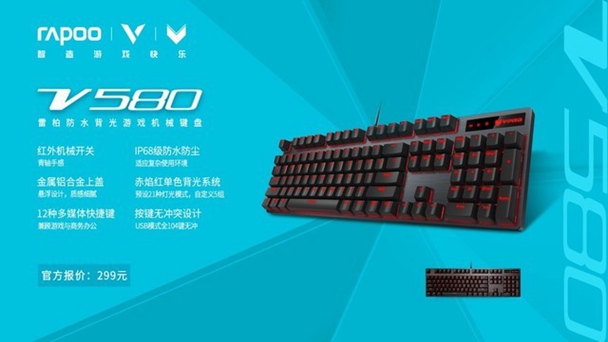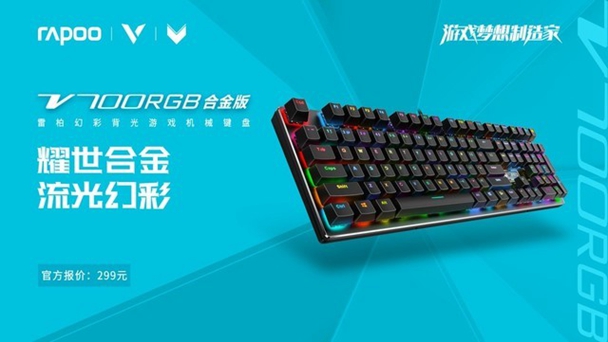 抵御水尘,V580防水背光游戏机械键盘展现防水防尘的强悍实力。耀世合金,流光幻彩,V700RGB合金版幻彩背光游戏机械键盘展现其不凡的睛彩魅力。