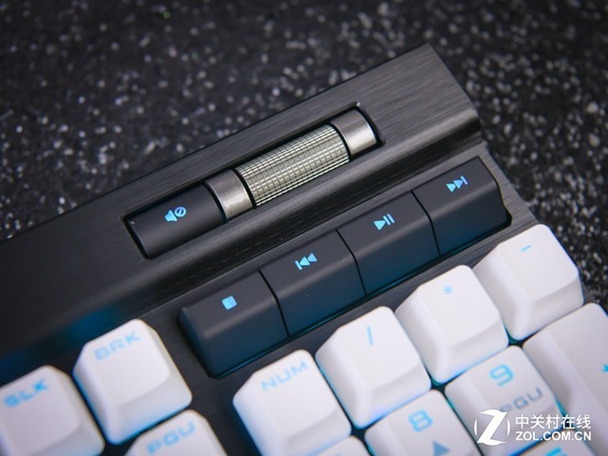 在最右侧,则是笔者最为喜欢的小键盘多功能设计区了。在右侧的顶端,拥有一个实体按键和金属滚轮,实体按键可以一键静音,十分方便,当然了如果只是想要简单的调节音量,旁边的金属滚轮就可以很好的满足个性化的调音需求;