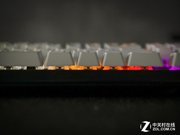 同时,键盘字符采用双色注塑工艺,渗入深度大,在笔者试玩一周后,仔细观察没有任何的形变或是染色,结合强度高,字符不容易磨损。