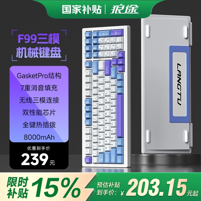狼途 F99机械键盘三模客制化无线蓝牙键鼠套装,是办公游戏电竞的得力助手。狼途 F99既适合办公场景,能让你高效输入,又能在游戏电竞时带来绝佳的操作体验。