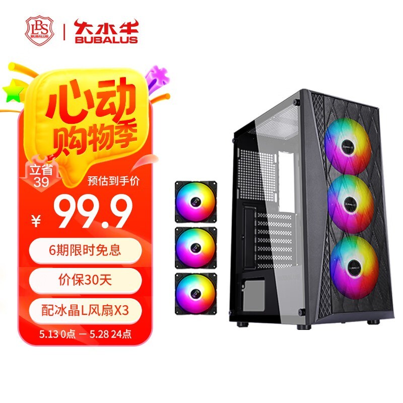 大水牛追风M+冰晶L3风扇套装 台式电脑游戏主机侧透机箱
