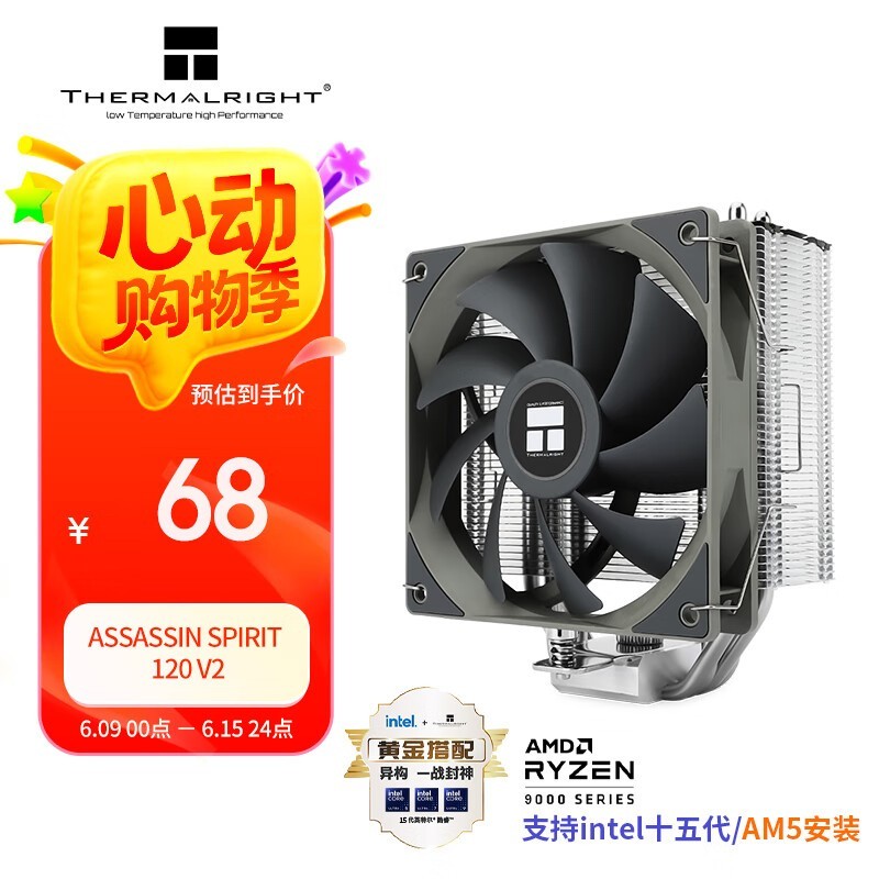 利民 AS120刺灵CPU散热器正在京东商城促销。这款散热器原价70元,现在到手价只需68元。