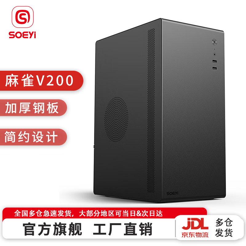 硕一 麻雀V200台式机电脑matx迷你机箱itx白色非侧透mini小尺寸手提主机箱壳家用商务办公桌面搭配风冷黑