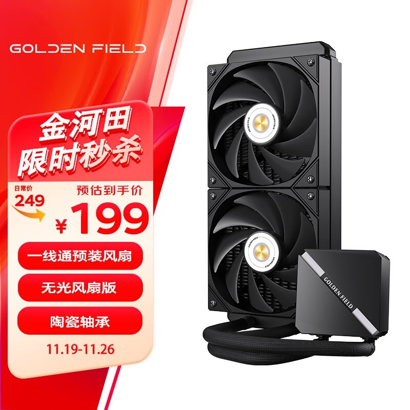 金河田 HIFI YJ240一体式CPU水冷散热器无光版 黑色 一线通预装风扇/支持多平台/陶瓷水泵/PWM温控