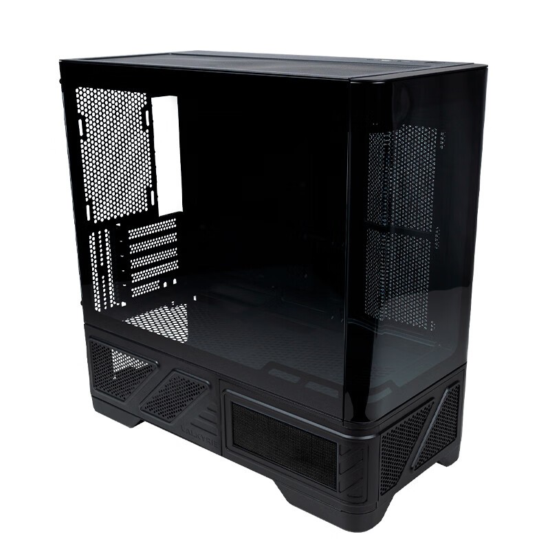 瓦尔基里 VK03-M LITE黑色M-ATX台式机箱拥有着双曲面海景房设计,空间宽敞充裕。支持360度水冷安装,无论你的主板布局如何,都能轻松兼容。同时,该机箱还配备了9个风扇位,保证了散热效果出色。除了实用的性能外,机箱还具备简约时尚的外观设计,展现出低调而精致的美感。