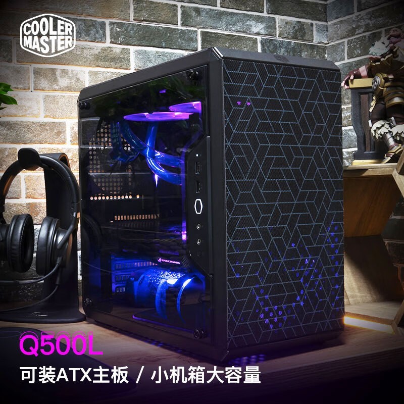 酷冷至尊 Q500L 黑 ATX中塔电脑台式小机箱 支持240散热水冷/透明侧板/电源垂直安装/4硬盘位