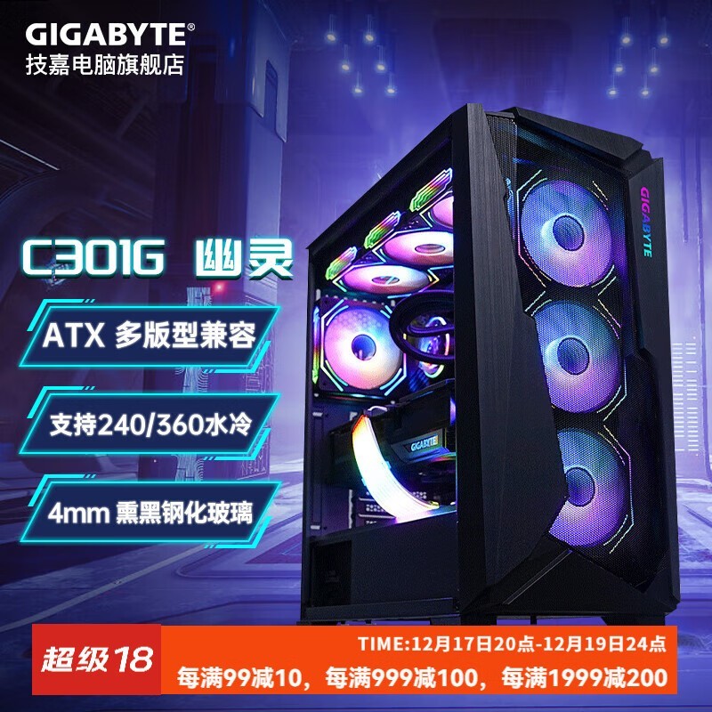 技嘉 C301G 幽灵机箱 M-ATX中塔/全塔 台式 海景房 DIY电脑 钢化玻璃熏黑 全景侧透 商务游戏 支持240/360水冷 【熏黑侧透】幽灵 中塔机箱