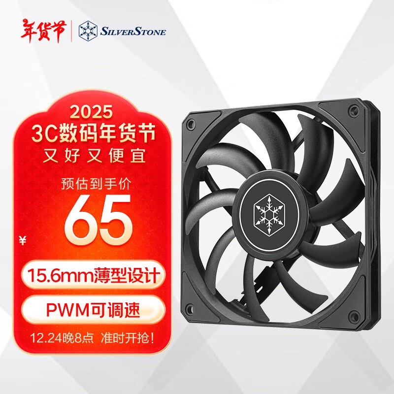 银昕 AS120B 12CM薄扇(15.6mm/PWM可调速风扇/黑色无光)