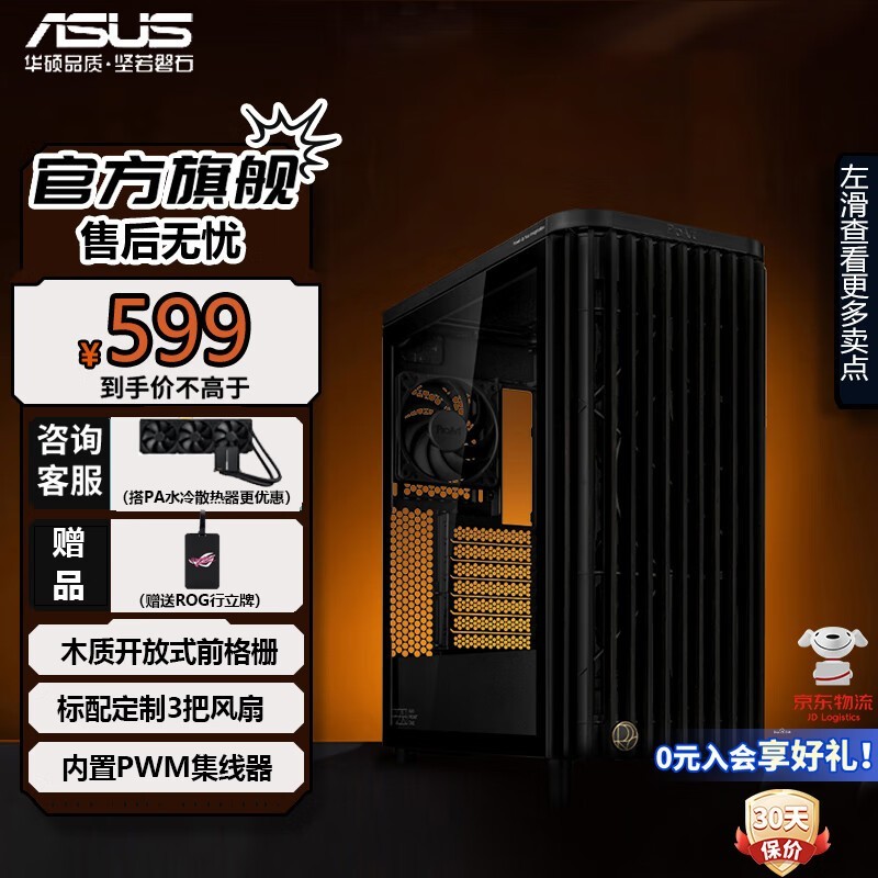 华硕 ProArt系列机箱,现在活动售价只要559.05元!这款机箱采用环保的木材质前格栅设计,既美观又符合个性化需求。华硕 ProArt前面板开放式设计,加上大开孔的防尘网能有效地保证气流通过效率,同时避免了宠物误触的风险。华硕 ProArt配备了定制的双160*32mm环形扇叶前进风风扇和120*28mm加厚后出风风扇,最大通风效率可以加速机箱内的热量循环。