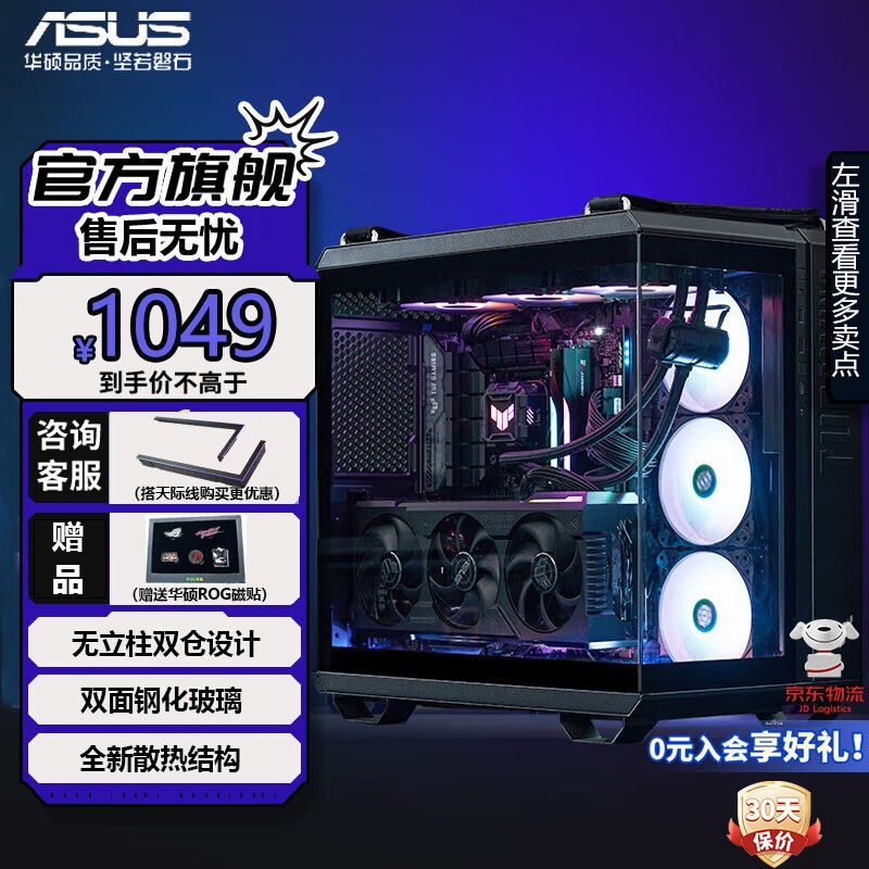 现在购买华硕 GT502机箱有优惠活动!你只需要在京东购买,并晒图评价即可返20元,同时还可获得ROG磁铁赠品。实付价格只需1029元,比原价便宜了不少!如果你正在寻找一款高性能且经济实惠的机箱,那么这款华硕 GT502绝对值得考虑。不要错过这次促销机会,赶快下单吧!
