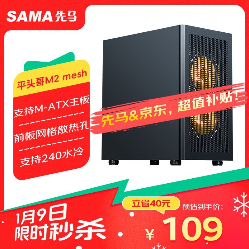 先马 平头哥M2 MESH黑色 m-ATX电脑主机箱 前板网格散热/支持240水冷/6硬盘位/USB3.0/Type-C预留孔