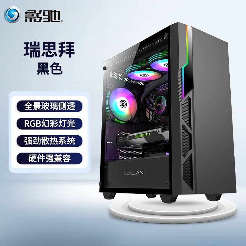 影驰 瑞思拜 支持MATX主板240水冷 全景玻璃侧透 USB3.0 下置电源仓 台式电脑主机箱 黑色