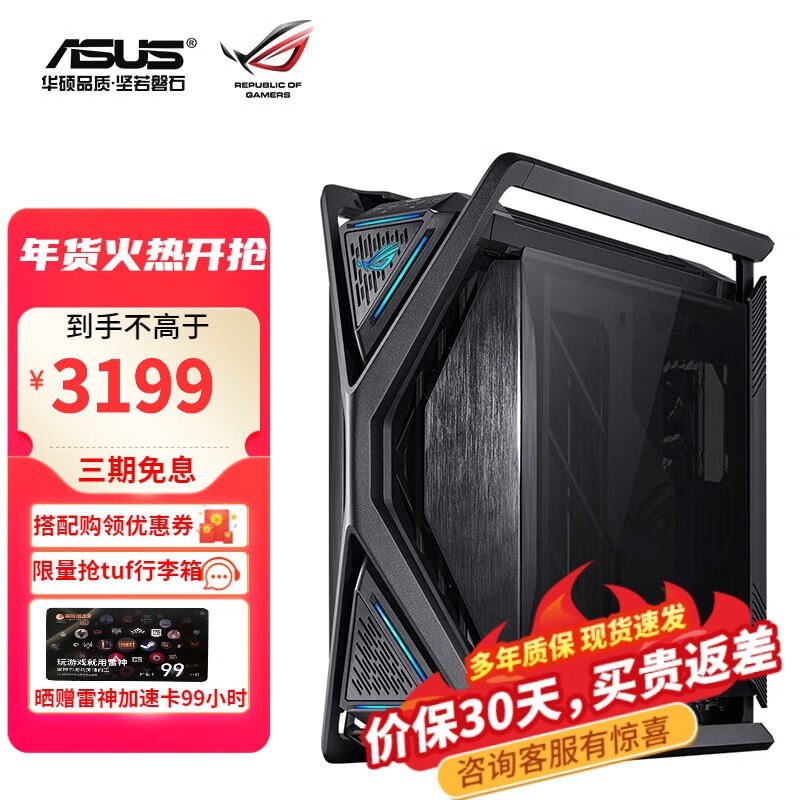 华硕 GR701创世神机箱/白色 2E/BTF背插 全塔铝合金X骨架支持EATX主板/双420水冷 OP DIYA ROG HYPERION 创世神黑色