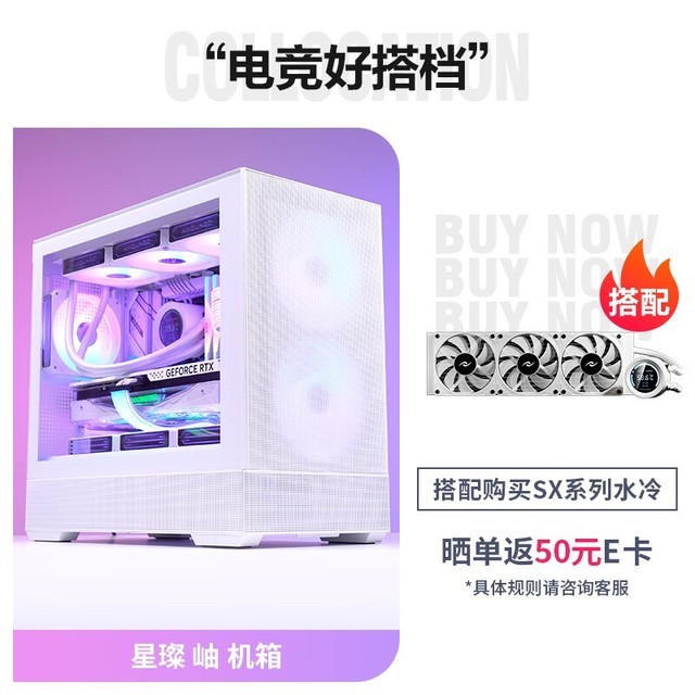 爱国者 星璨 岫 白色 游戏电脑台式主机箱 支持背插主板 M-ATX主板/顶部360水冷