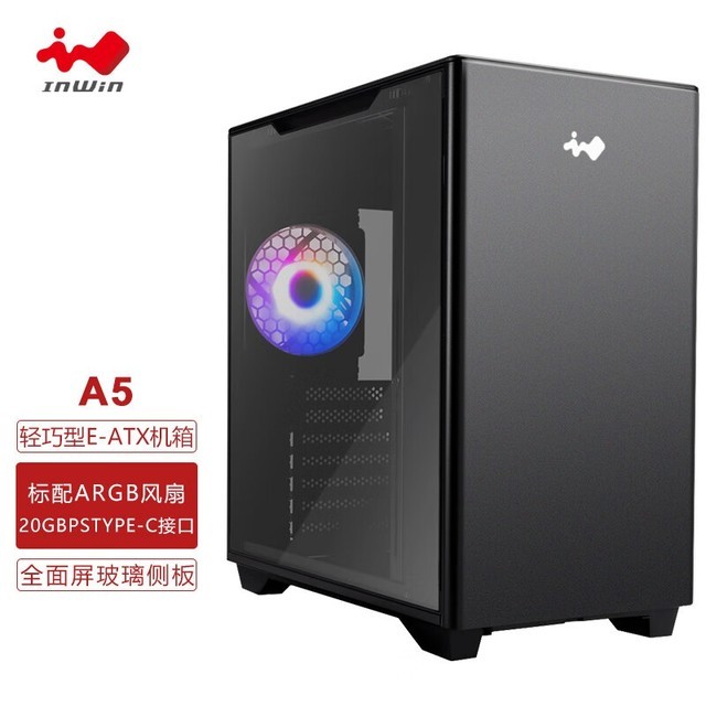 迎广 A5黑色 电脑主机箱(支持E-ATX主板/240水冷排/高规格显卡/标配ARGB风扇/20GbpsType-C接口)