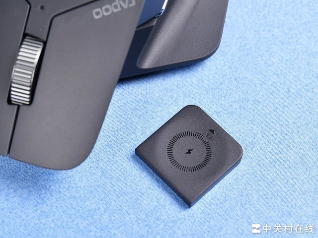 雷柏MT760和MT760 Mini鼠标底部接收器收纳仓使用了磁吸设计,拆装简单,并且此处搭载了雷柏P3无线充电功能模块,通过额外的充电底座即可实现无线快充,不过要注意充电底座需要单独购买。