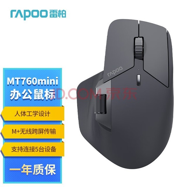 雷柏 MT760mini中小手无线/蓝牙/有线多模办公鼠标 人体工学跨屏传输150小时续航11键可定义 黑色