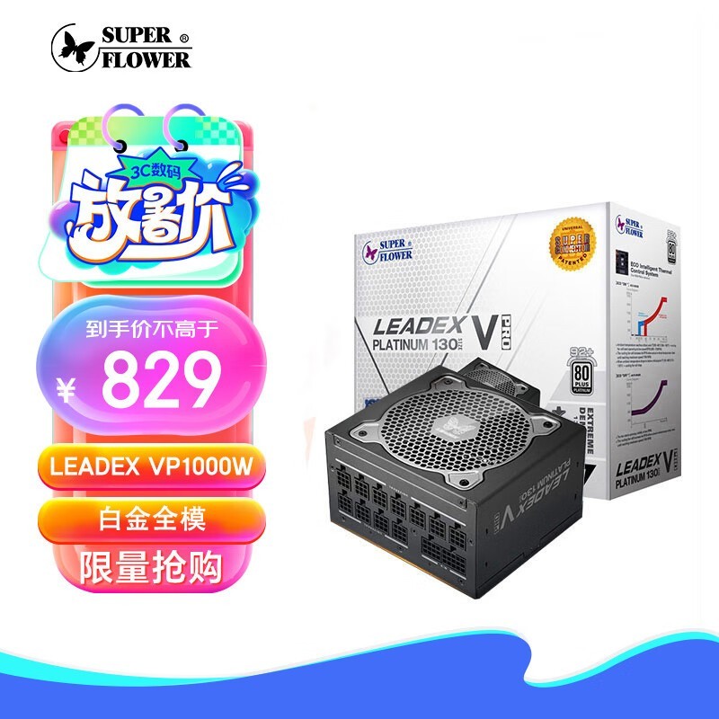 振华 VP1000W 额定1000W LEADEX VP1000W 电脑电源 13cm白金牌全模 标配12VHPWR线 支持4090显卡 十年保固
