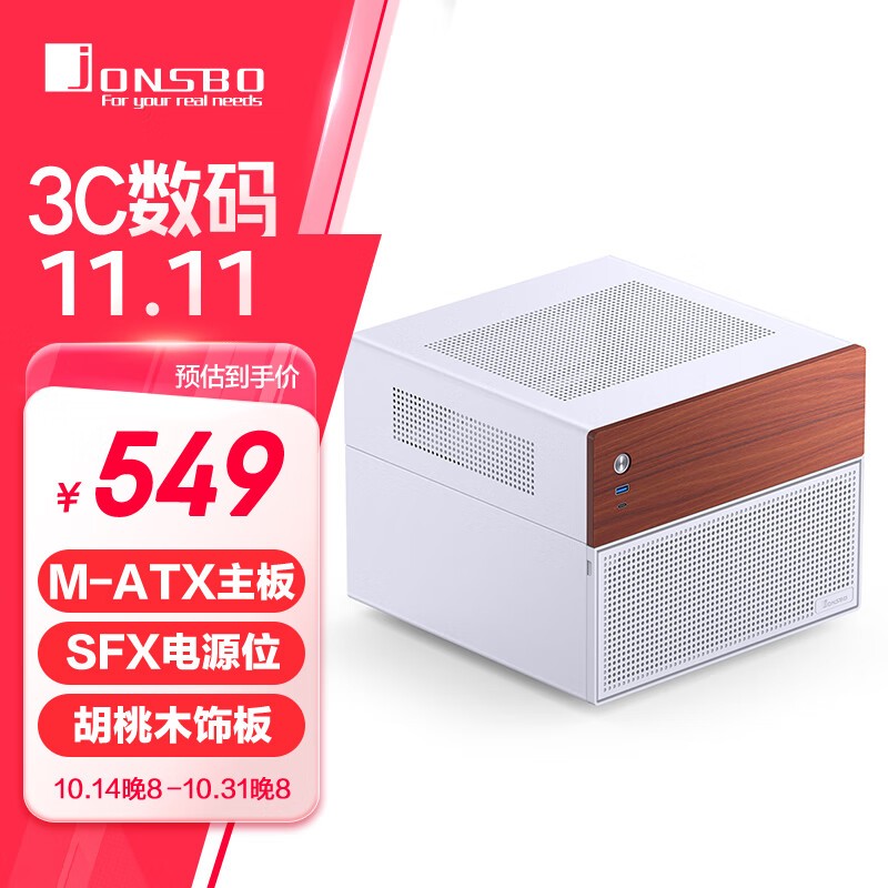 乔思伯 N4 白色 NAS机箱(M-ATX主板/SFX电源位/胡桃木饰板/分仓结构/6大2小硬盘位/120mm*1风扇)