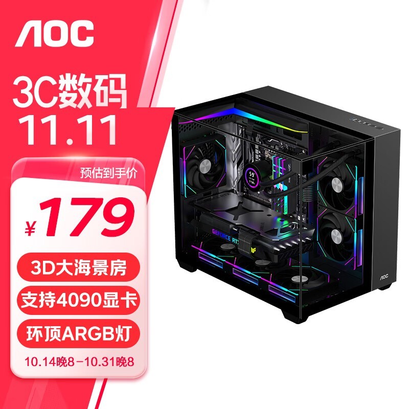 冠捷 CG399M黑色 游戏电脑海景房机箱 3D立体全景/三面玻璃/快拆设计/支持M-ATX主板/240水冷位