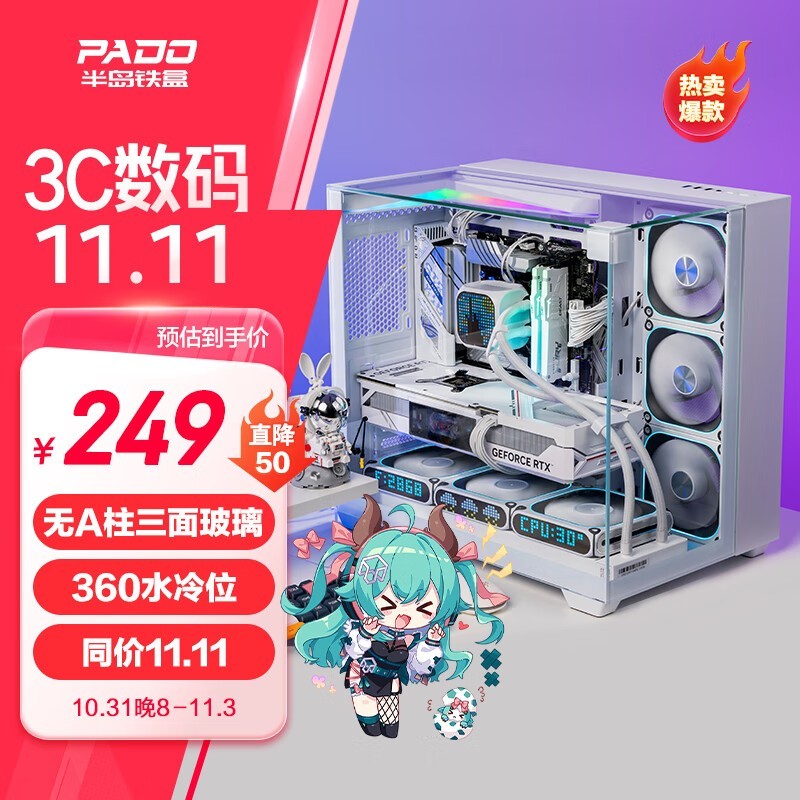 半岛铁盒 白泽360MAX 白色海景房 ATX 台式机电脑主机箱(无A柱/三面玻璃/支持360水冷/7风扇位/4090显卡)