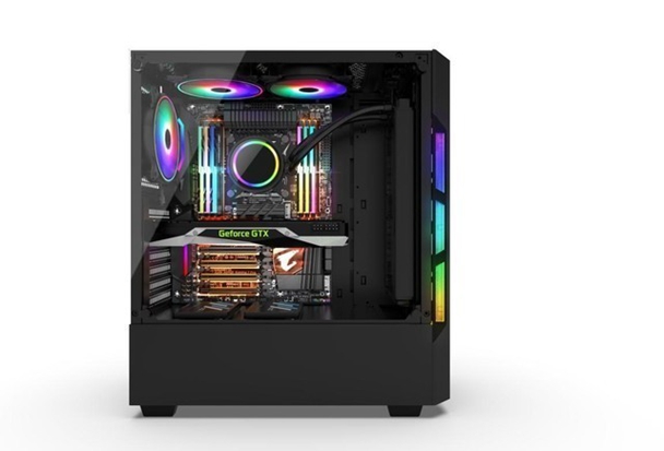 航嘉 GX580H新品中塔台式机箱,炫酷侧透设计和酷炫风扇位配备,让您的主机RGB光效毫无保留的展现,炫彩缤纷,仿佛宇宙的璀璨星云。