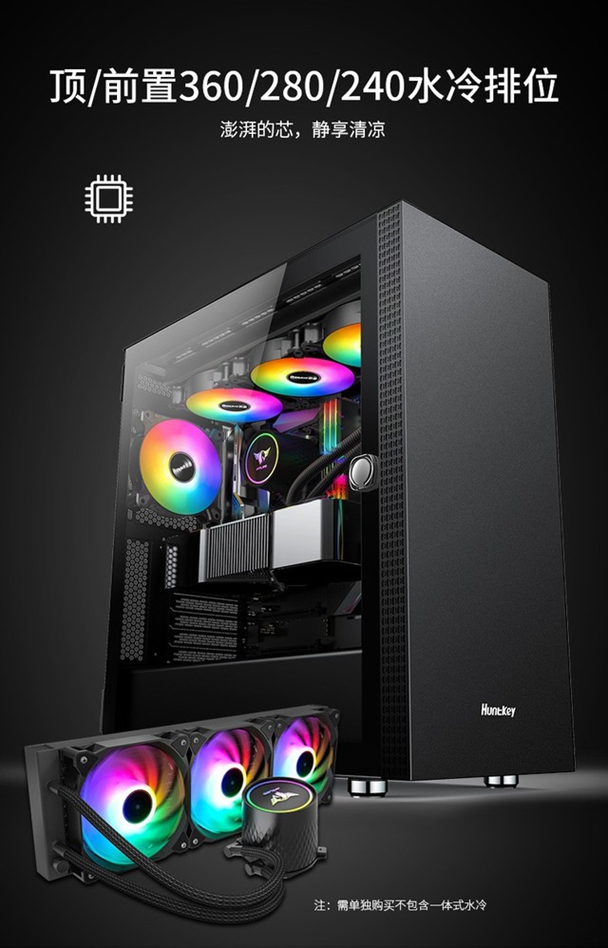 航嘉 GX780R魔戒提供了7个120mm标准风扇位,顶部默认可以安装360冷排,前部在拆卸电源仓挡板之后也可以安装360冷排,玩家可以根据MOD需要自行选择。