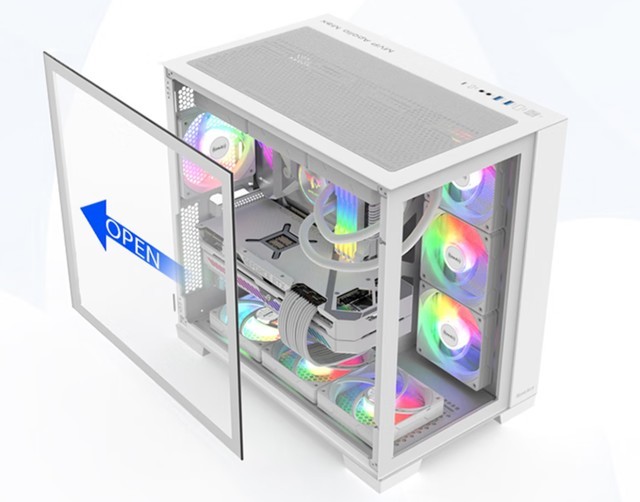 航嘉 阿波罗麦克斯拥有非常宽敞的空间,支持ATX主板的机箱,也向下兼容mATX和miniITX主板,可安装160mm以下的双塔风冷散热器,也支持RTX 4090这样的高性能显卡。从外观看,这款机箱拥有黑、白双色可选,采用全景侧透双面玻璃设计,可谓是超级海景房,让玩家能一览无余地欣赏到内部硬件的工作情况以及绚丽的RGB灯效,展示出独一无二的个性和风格。