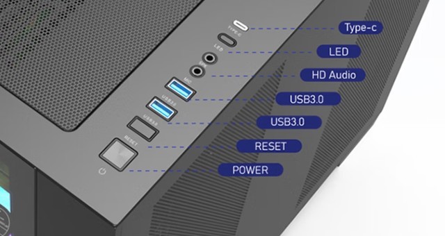 除此之外,航嘉 阿波罗麦克斯还具备便利的接口设计,正面的顶部配备了USB3.0、Type-C接口以及3.5mm音频接口,不仅能方便的进行数据的高速传输,连接耳机和麦克风也更加方便,再也不用去机箱后面插线了。
