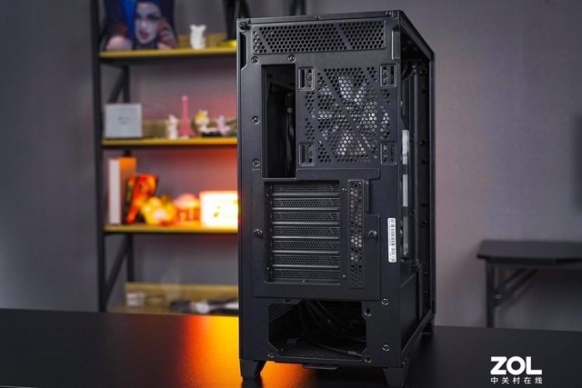 右侧板为整块钢板,下部的底仓位置有大面积的通风孔,可进一步提升机箱内部的通风散热效果。