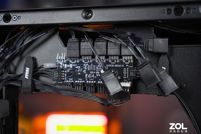 把上方的白色贴纸揭开,可以看到这是机箱的散热风扇和ARGB灯效的控制器兼HUB,不仅能实现与主板灯效联动,还能联动主板的PWM风扇调速,同时机箱的LED开关也可以对它进行灯效控制。