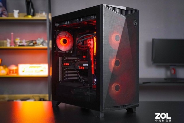 机箱前面板也透出了内部风扇的RGB灯光,黑色的机箱搭配红色的灯效主题,是不是非常符合微星魔龙的特征?