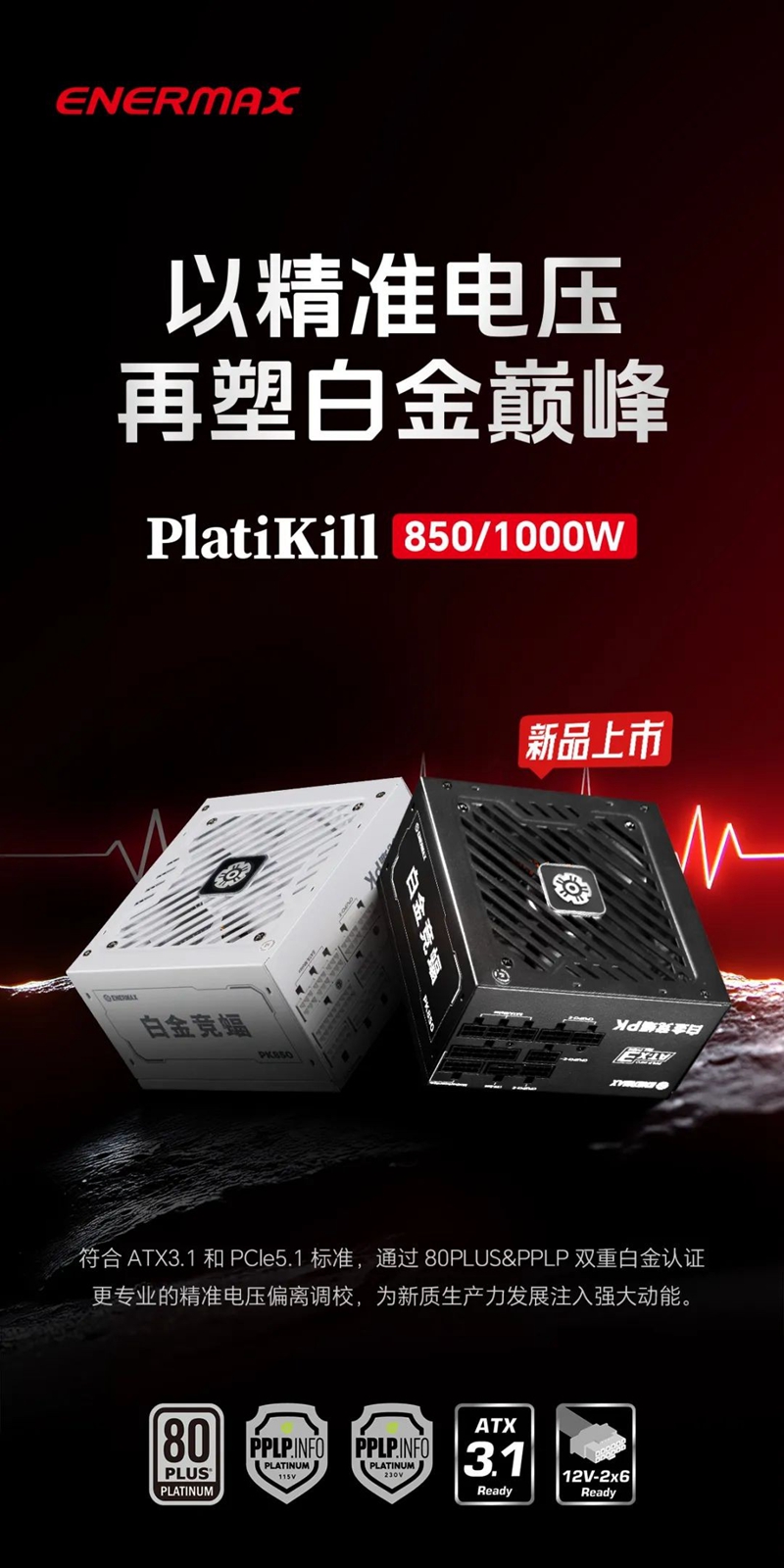 而安耐美官方今日宣布推出 PlatiKill 白金竞蝠系列电源,为“竞蝠”产品线带来 80PLUS + PPLP 双机构白金认证的更高转换效率和对新时代 ATX3.1、PCIe CEM5.1规范的支持。