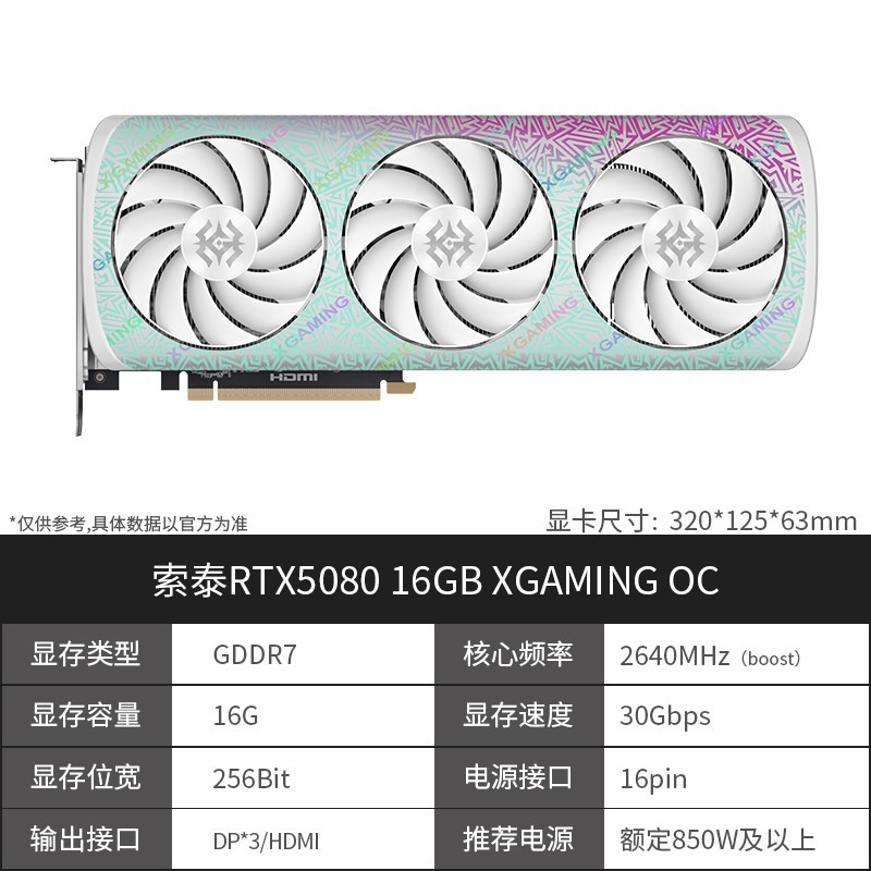 索泰 RTX5080 16G台式机电脑游戏独立显卡非常适合游戏玩家。索泰 RTX5080显卡对于想要畅玩黑神话:悟空等各类大型游戏的玩家来说是个很棒的选择。索泰 RTX5080拥有16G的大显存,能够在高分辨率下轻松应对复杂的游戏场景,提供流畅的游戏画面和出色的视觉效果。
