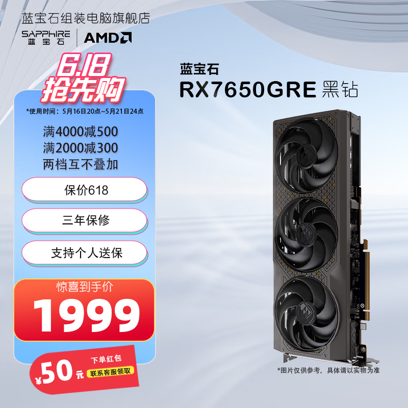 蓝宝石 RX7650 GRE 8G 黑钻版显卡,采用高性能RDNA3架构设计,搭配8GB GDDR6显存,带来流畅稳定的游戏体验和强大的图形处理能力,适合追求高画质与流畅度的游戏玩家和创作者。