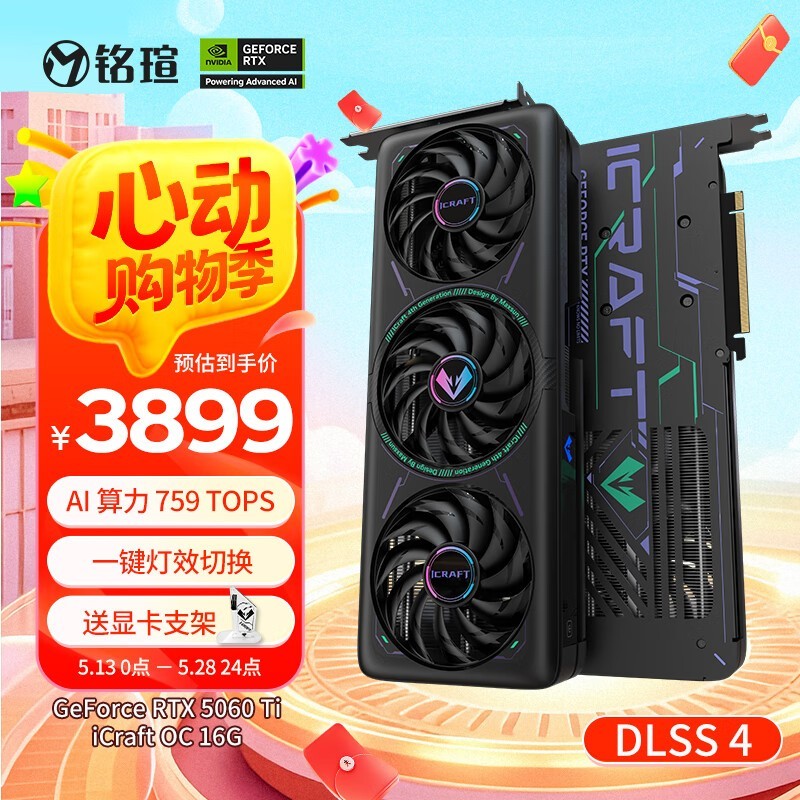 铭瑄 RTX5060Ti iCraft OC16G DLSS 4 电竞光追游戏AI设计电脑显卡