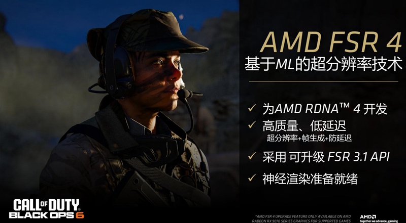 除了硬件架构上的提升外,AMD还着手软件优化,支持AMDFidelityFX超级分辨率锐画技术4,也就是FSR 4。即使在苛刻的工作负载下,如具有最高光线追踪设置的4K游戏,AMD最新的尖端机器学习驱动升级技术也能提供高质量的增强帧。