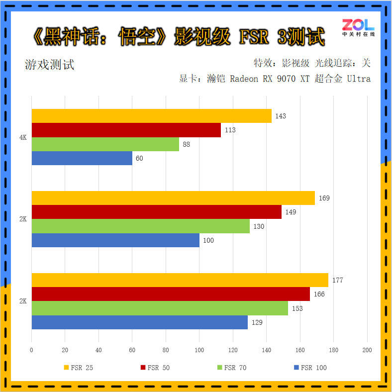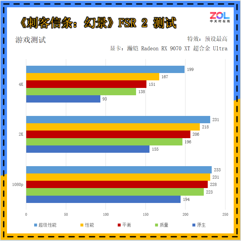 FSR是A卡非常重要的技术,关系到游戏画面是否能够流畅运行。RX 9000系列支持FSR 4,但基于目前支持FSR 4技术的游戏较少,所以我们先针对现有的FSR 2和FSR 3来进行测试,以便了解不同代际的FSR技术对于游戏画面帧率的影响到底有多大。