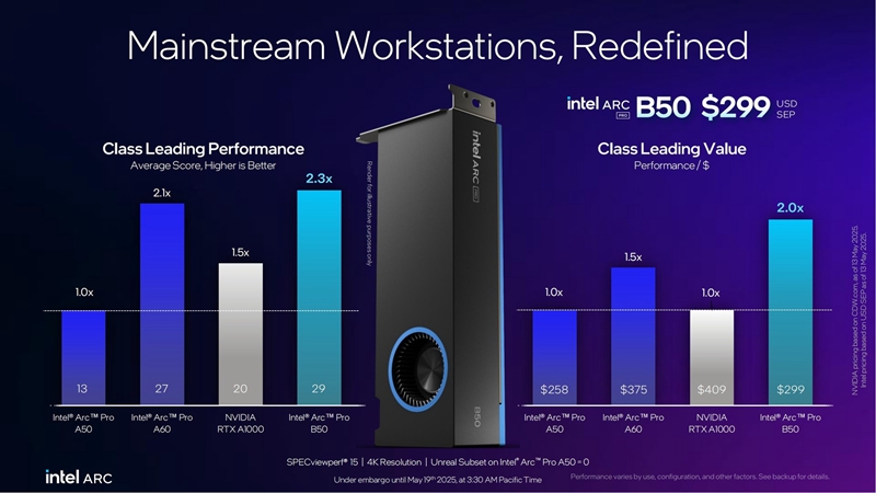 锐炫Pro B50系列官方参考售价为299美元,依旧有着非常不错的性价比。