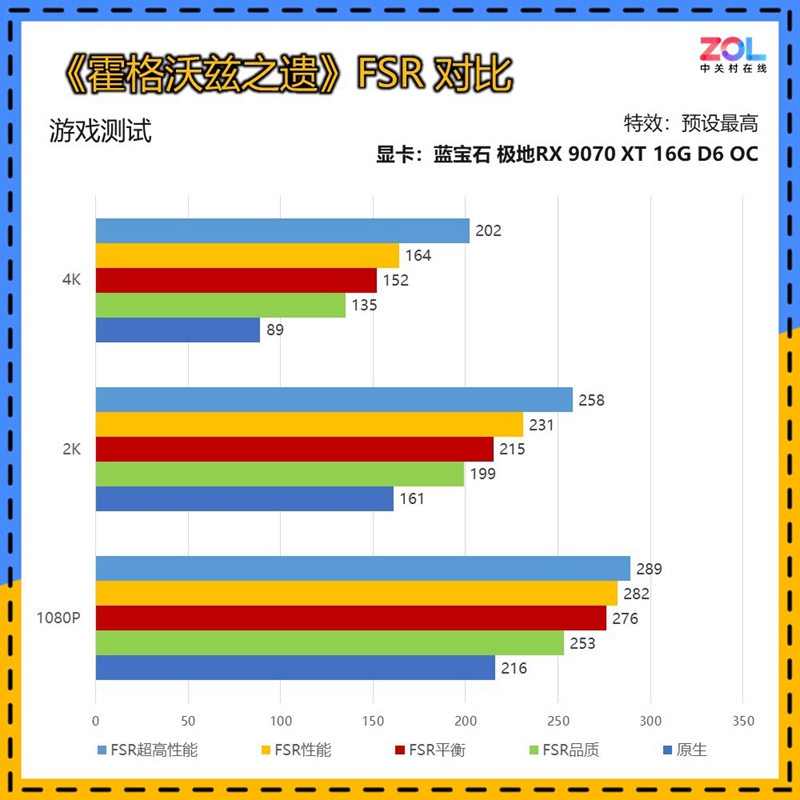 《霍格沃兹之遗》对于A卡优化比较友好,可以看到在2K分辨率下,即使原生画质也能达到惊人的161帧。而4K分辨率中FSR品质模式即可达到135帧左右的电竞级水准。