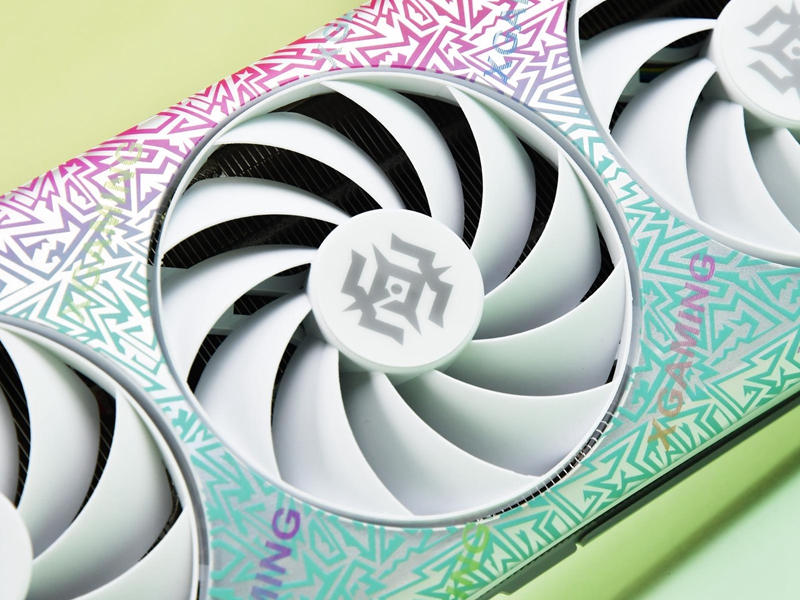 来到显卡正面,索泰 RTX5060Ti 8G XGAMING OC显卡本体采用了三风扇设计,使用了冰芯2.0散热系统,三个环刃风扇直径均为9cm,使用了高强度新型复合材质,并且还优化了叶片的曲率,在降低风噪的同时,提高了风压和垂直风流的穿透力。同时搭配镜面抛光导热模组,配合三根6mm加厚镀镍纯铜热管,通过脉络状导液沟槽设计提升冷凝液循环效率。