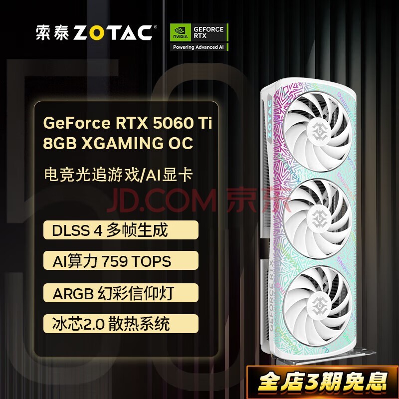 索泰GEFORCE RTX 5060ti 16G|8G 台式独立游戏电竞 显卡 deepseek人工智能 50系首发DLSS4 RTX 5060 Ti 8G XGAMING OC