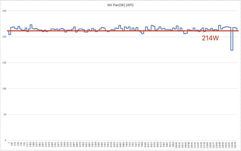 除了满载烤机,我们还测试了游戏中显卡的真实功耗数据,在《赛博朋克2077》benchmark设置4K分辨率的光追加速画质,并开启DLSS 4 4X多帧生成,将显卡性能拉满。经测试,七彩虹iGame RTX 5070 Ultra W OC 12GB的平均功耗为214W,相比FurMark烤机低36W左右。