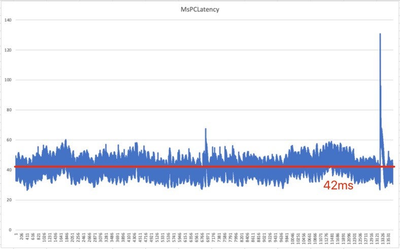 在功耗检测的同时,我们也调出了延迟数据,在DLSS 4 4X多帧生成的环境下,七彩虹iGame RTX 5070 Ultra W OC 12GB游戏平均延迟为42ms,这意味着即便有多张AI生成帧参与到游戏中,延迟依然很低,效率进一步提升,尤其是在FPS电竞游戏体验会更好。